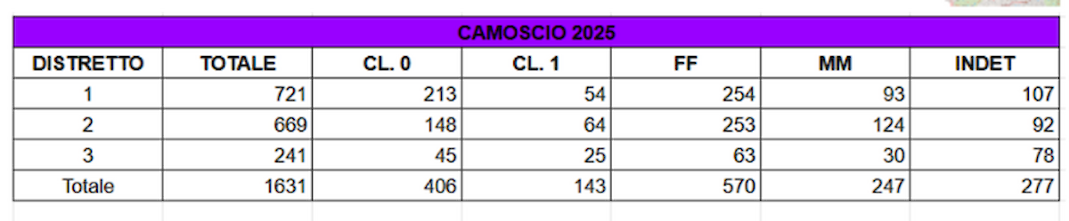 I risultati ottenuti nei censimenti 2025 sono stati influenzati dalle condizioni meteorologiche caratterizzate da temperature improvvisamente molto elevate che hanno condizionato la distribuzione dei camosci e quindi il loro avvistamento. Rispetto agli scorsi anni, infatti, gli animali si trovano a quote più elevate, in versanti meno esposti o in aree boscate a più basse quote.